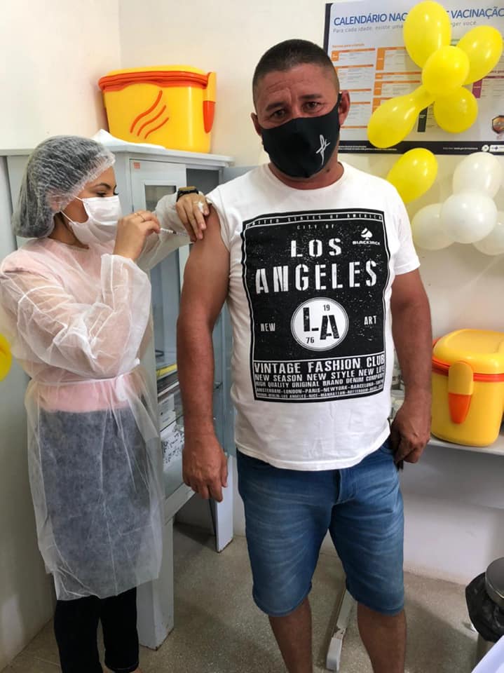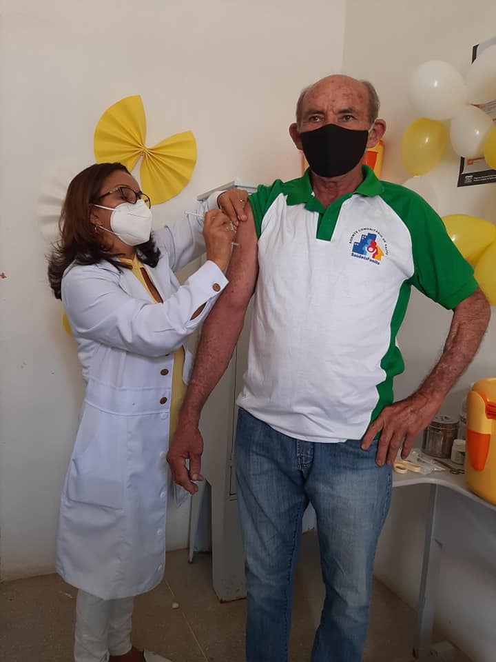 A primeira pessoa a ser vacinada no município de Sossego foi a Técnica de Enfermagem Maria Madalena dos Santos Monteiro de 60 anos, que há muitos anos trabalha como vacinadora no município.