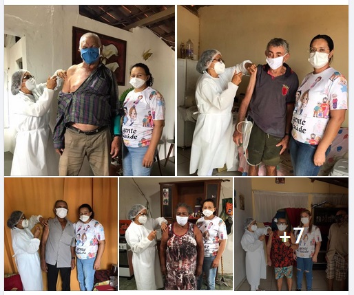 Mantendo os informes da vacinação contra a COVID 19, a equipe de imunização do Município de Sossego dá continuidade a mais um dia de campanha. No dia de hoje, estivemos vacinando casa a casa, os idosos que fazem parte do grupo prioritário com idade de 75 a 79 anos. E para nossa felicidade, na zona urbana, esse grupo encontra-se 100% imunizado com a primeira dose da vacina CORONAVAC. A 2ª dose será administrada após 28 dias. Amanhã (23/03/2021) a equipe segue para a Zona Rural do Município para assim fechar mais uma etapa desse processo. Segue os registros, onde todas as fotos foram autorizadas para publicação.
