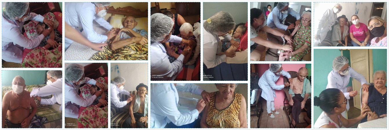 As fotos foram autorizadas pelas famílias dos 10 primeiros idosos acamados contemplados com a vacina.