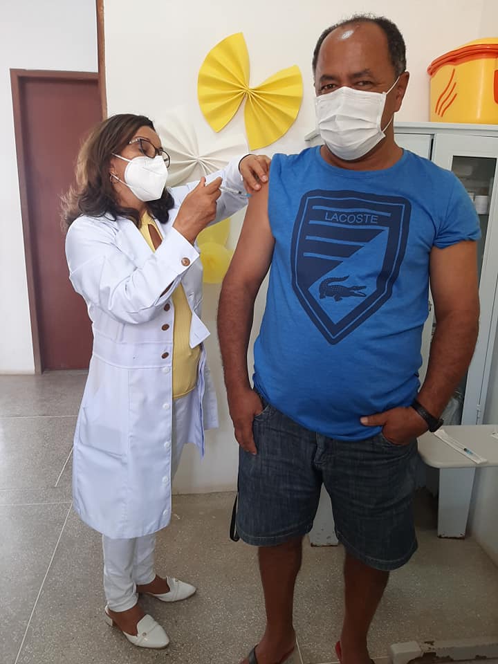 A primeira pessoa a ser vacinada no município de Sossego foi a Técnica de Enfermagem Maria Madalena dos Santos Monteiro de 60 anos, que há muitos anos trabalha como vacinadora no município.