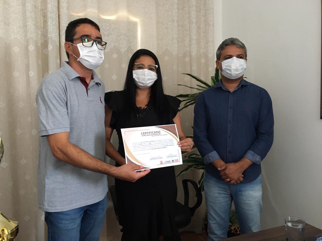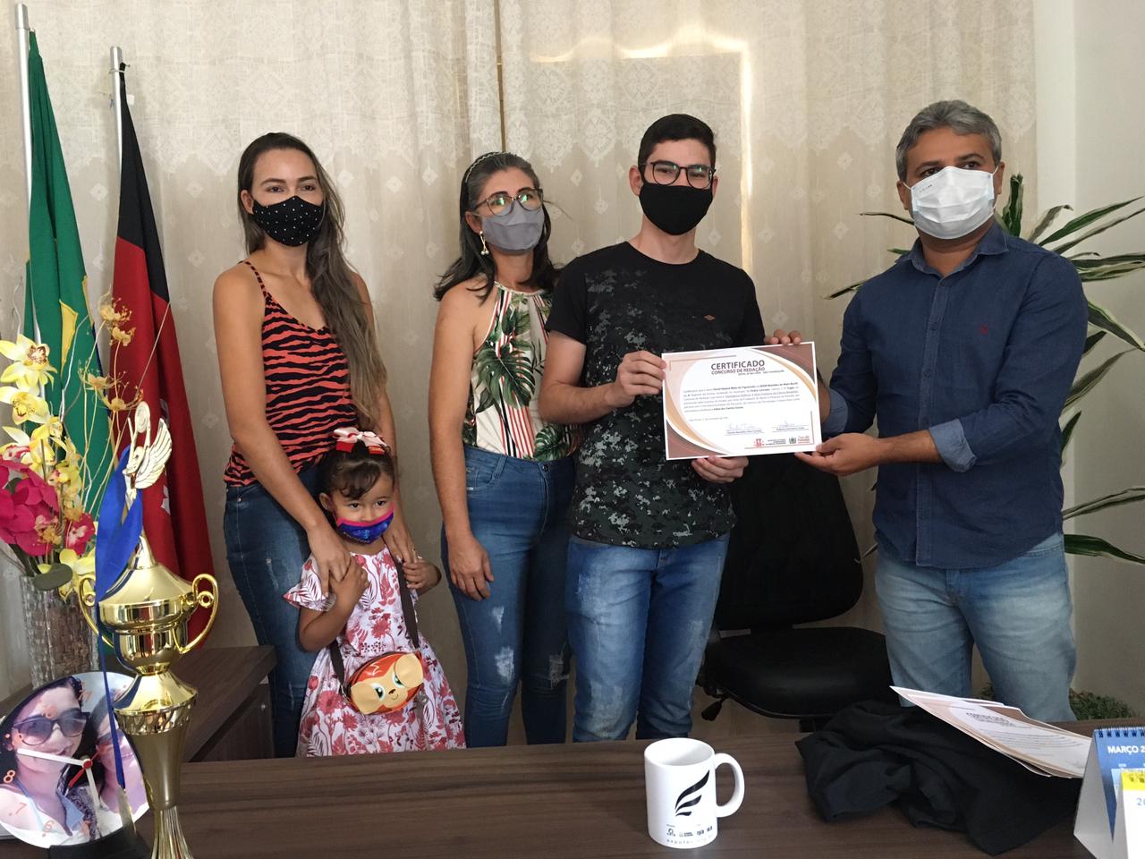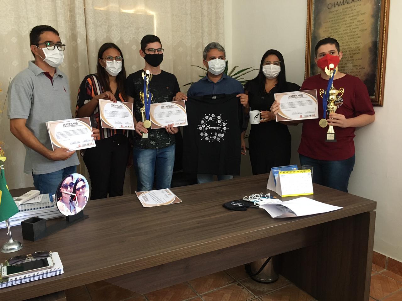 A homenagem aconteceu no Gabinete da Prefeita Lusineide Oliveira, que recebeu na manhã desta sexta feira, 19, o Gerente da 4ª Gerencia de Ensino Regional Maricléferson Gomes, Os alunos homenageados, os familiares, os professores, Diretores e a Secretaria de Educação do município.