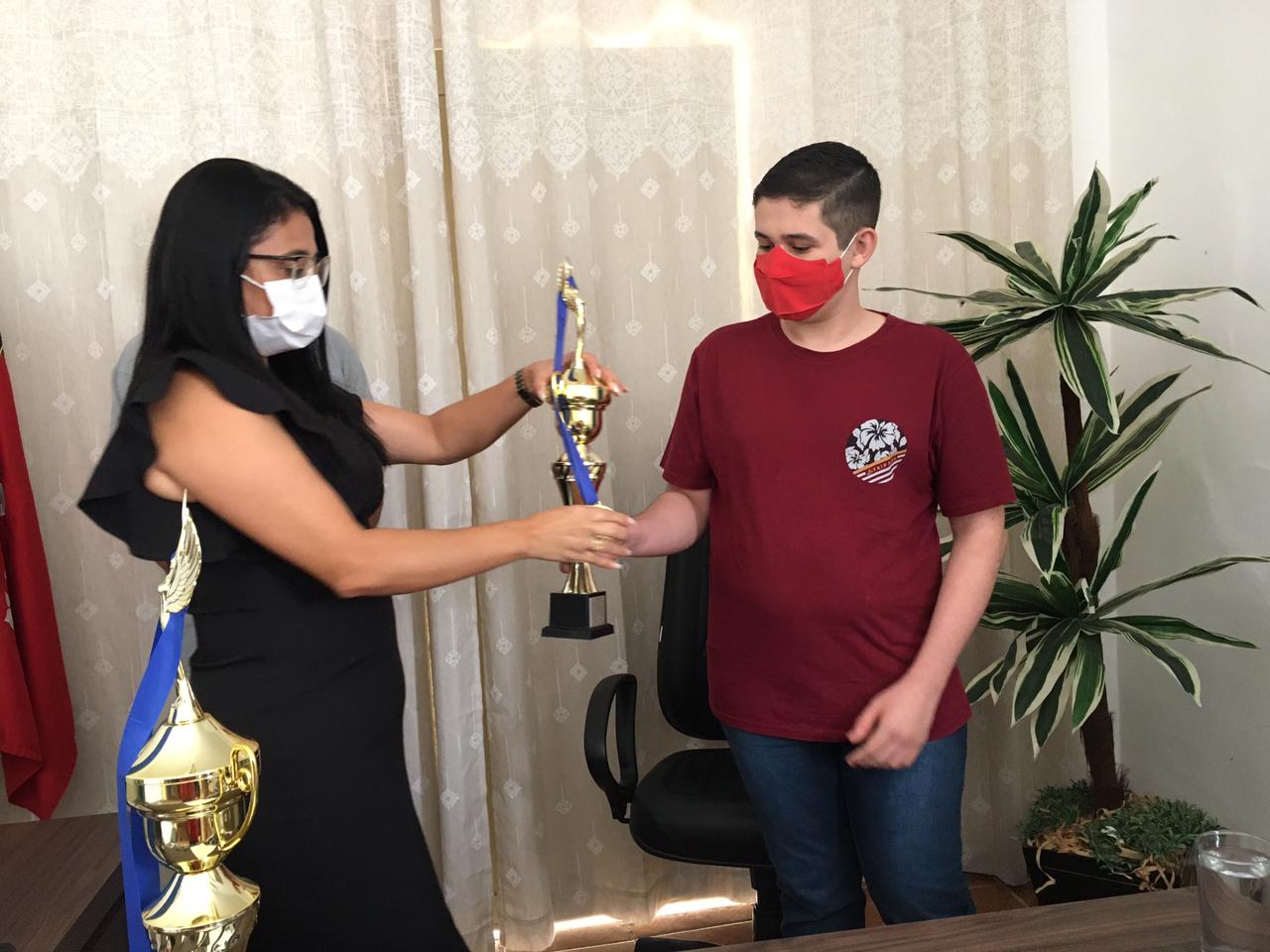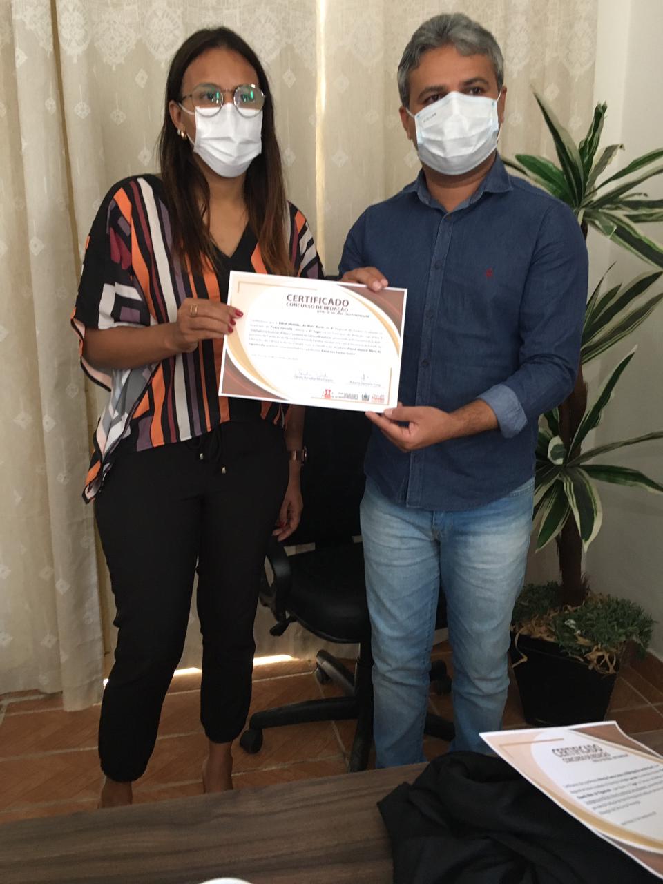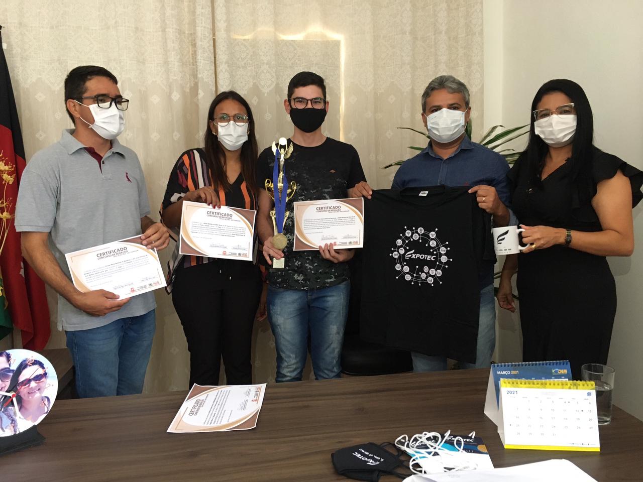 A homenagem aconteceu no Gabinete da Prefeita Lusineide Oliveira, que recebeu na manhã desta sexta feira, 19, o Gerente da 4ª Gerencia de Ensino Regional Maricléferson Gomes, Os alunos homenageados, os familiares, os professores, Diretores e a Secretaria de Educação do município.