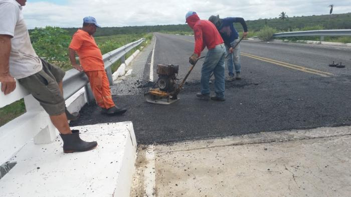 Pela segunda vez a Prefeitura de Sossego, através da gestora Lusineide Oliveira, é atendida em tempo hábil sobre pequenos reparos de depressões asfálticas surgidas na cabeceira da ponte-sangradouro da Barragem Bonsucesso na PB. 167 que liga a cidade de Sossego ao Entroncamento da BR. 104. Recentemente foi feito serviço de compactação no acostamento bem próximo a ponte por solicitação ao Departamento de Estrada e Rodagem da Paraíba. Nesta quarta-feira, 16, mais uma vez atendendo Requerimento da Prefeitura, o D.E.R. enviou uma equipe técnica e funcionários  para reposição de material asfáltico nas duas cabeceiras da ponte facilitando o tráfego de veículos pela localidade. Veja fotos.