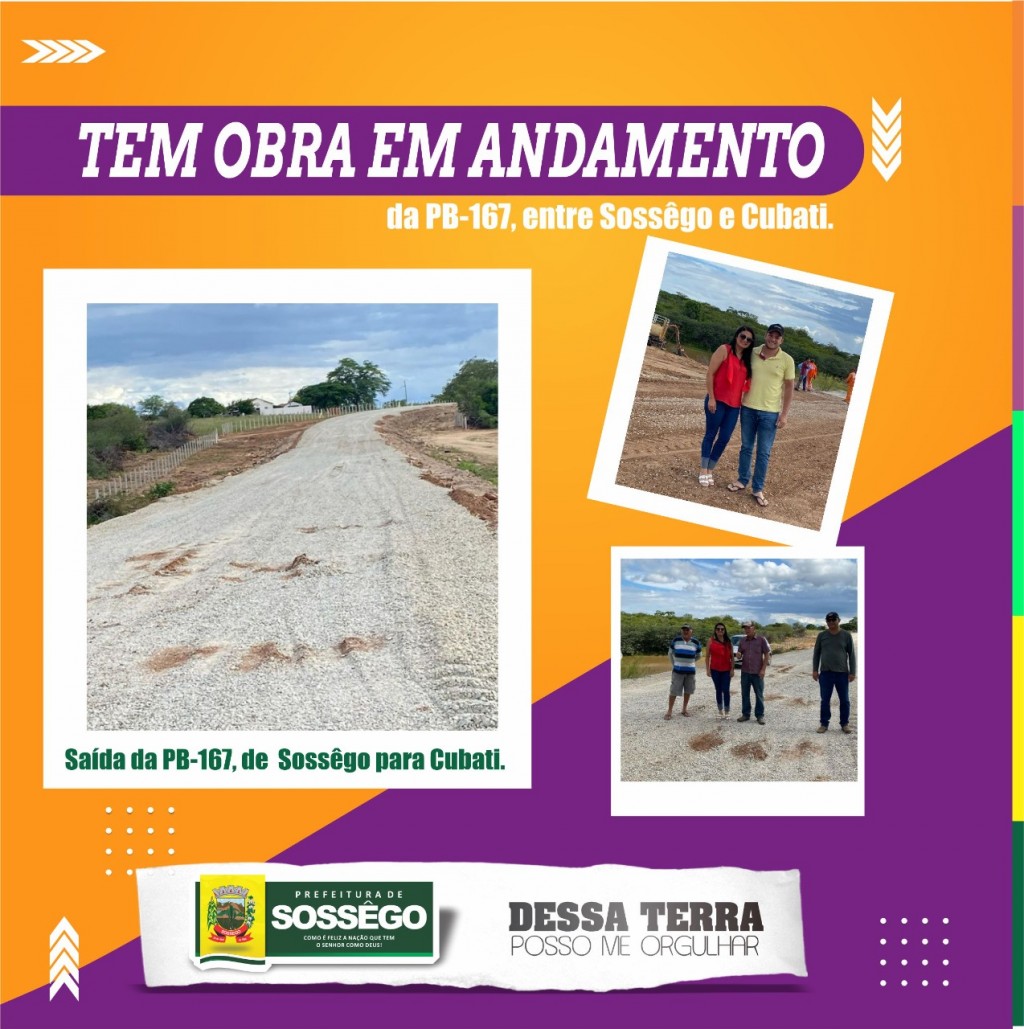 Dando prosseguimento a rotina de visitas as obras em andamento no município, na tarde desta Sexta-feira, 13 de maio, a prefeita de Sossêgo, Lusineide Oliveira, esteve visitando as obras de pavimentação asfáltica da PB 167, que liga as cidades de Sossêgo a Cubati no curimataú paraibano.