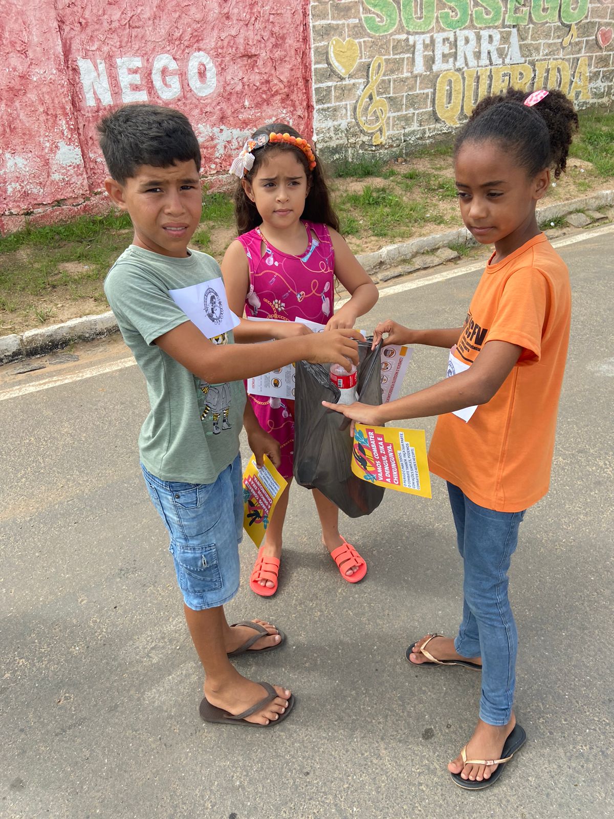 Foi realizado na manhã dessa terça-feira, 18 de abril no CRAS em Sossêgo, uma ação de conscientização sobre os riscos da dengue e as formas de prevenção e cuidado. A ação foi uma parceria entre a secretaria de assistência social e as coordenações de vigilância ambiental e atenção básica da secretaria de saúde. Após a palestra as crianças saíram na rua entregando panfletos e mobilizando os cidadãos.