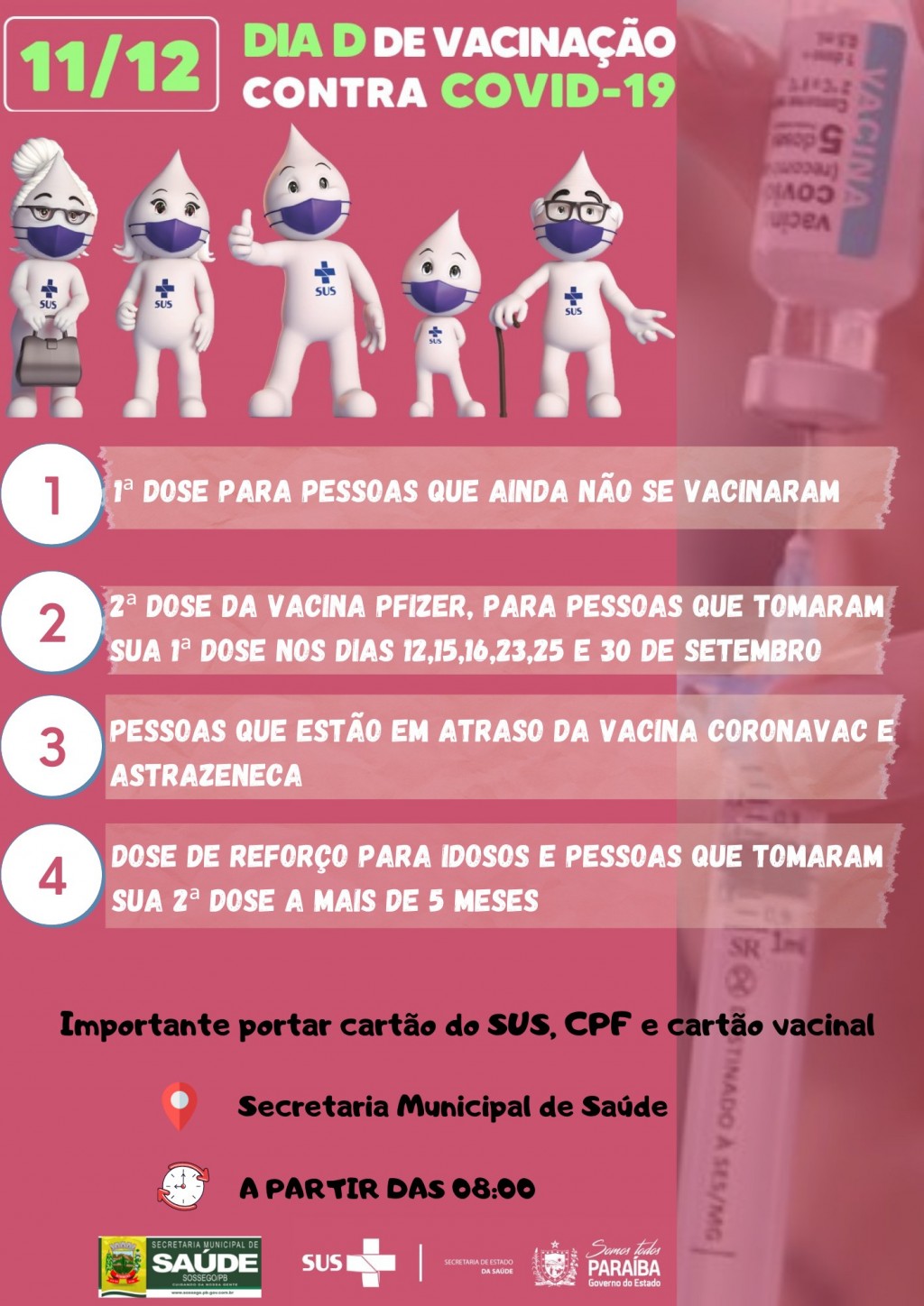 Dose de reforço para idosos e pessoas que tomaram sua 2ª dose a mais de 5 meses - incluindo-se também os profissionais de saúde que ainda não tomaram seu reforço;